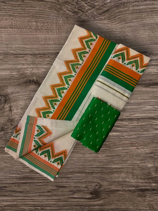 2×3 Kattikara Fancy Temple Print Setmundu