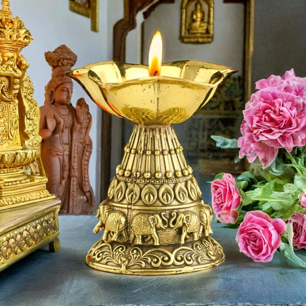 Introducing the Brass Deepak with Elephant Engraving, a beautifully crafted lamp that adds a touch of tradition and elegance to any space. Made from 100% pure brass, this Deepak features intricate elephant engravings, symbolizing strength and wisdom, making it an ideal choice for temple, home, or office decor.
