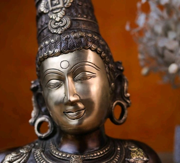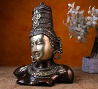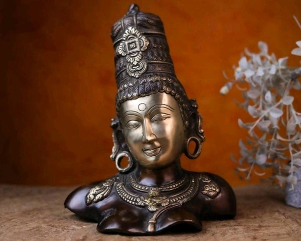 This Brass Goddess Parvati Head is not just a decor piece—it's a symbol of spiritual strength and beauty, a timeless artifact that will elevate any environment with its divine aura.