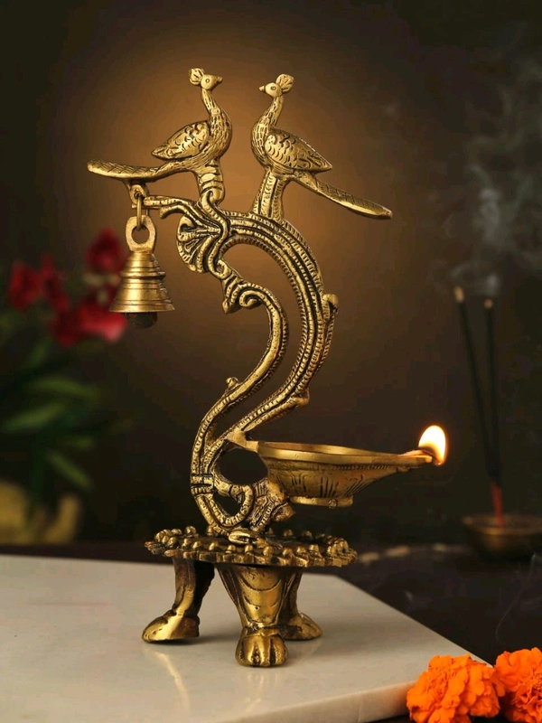 Bring joy, happiness, and well-being into your home with this beautifully crafted Peacock Diya with Bell—a symbol of tradition and elegance that will be cherished for years to come.