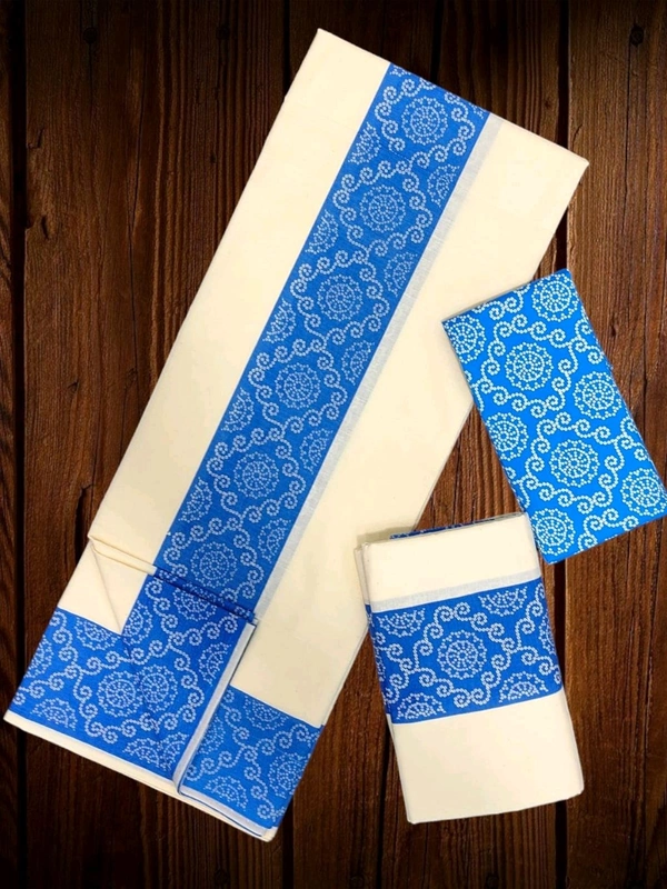 COTTON MAYA PRINT SET MUNDU WITH BLOUSE