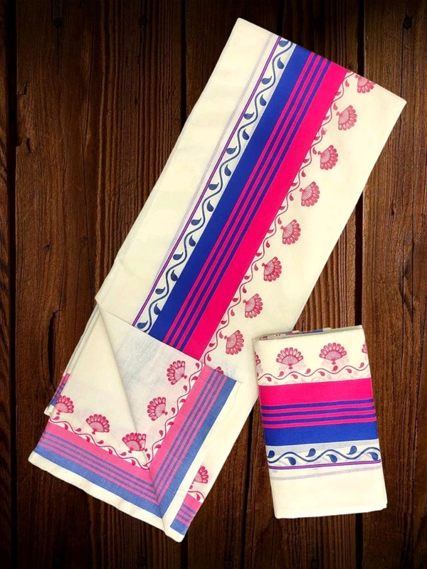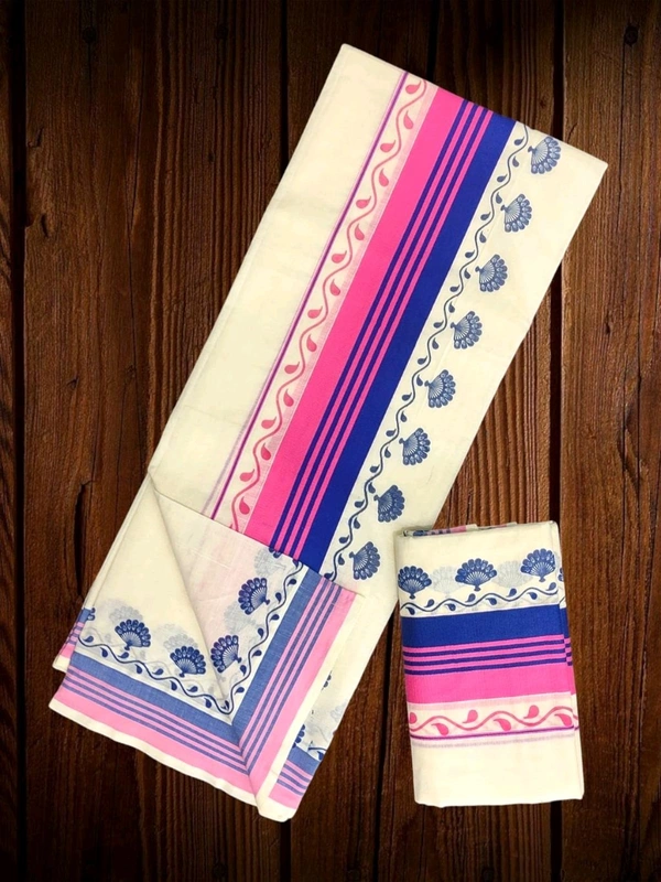 Enhance your wardrobe with this stunning Katikara Fancy Print Set Mundu, a blend of tradition and style that you’ll truly admire.