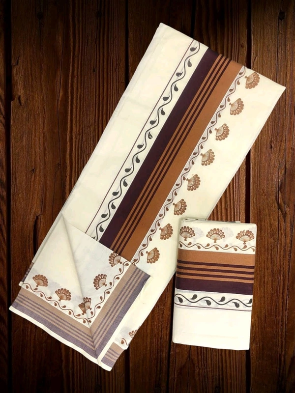 Discover the elegance of tradition with our 2*3 Katikara Fancy Print Set Mundu. This beautifully designed mundu, measuring 2.80 meters, features intricate patterns and a sophisticated print, making it a perfect choice for special occasions or daily wear.