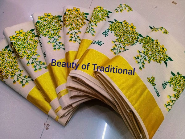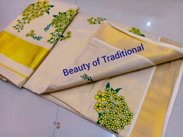 Kanikonna flower design Emroydary work saree Material: Golden tissue Length: 6.25 Mtr Premium quality
