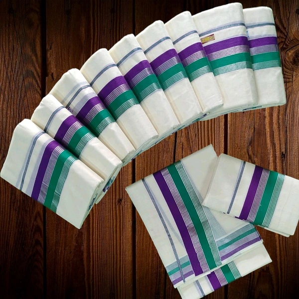 LIGHT FANCY SILVER LINES SET MUNDU KERALA SET MUNDU