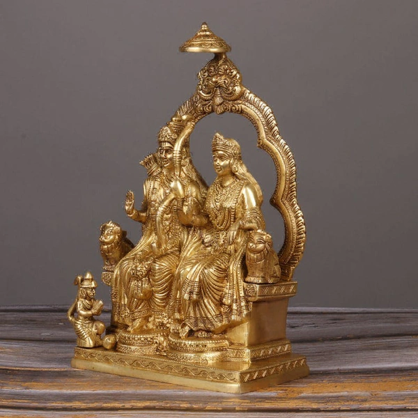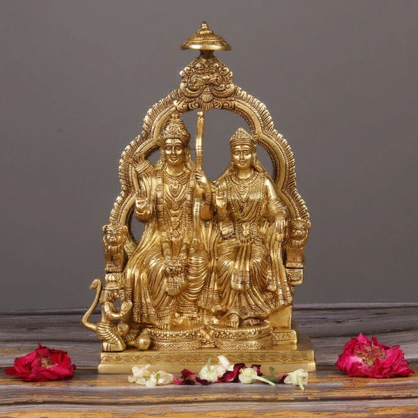 Introducing our new arrival, a magnificent statue of "Lord Rama with Goddess Sita and Hanumana." Crafted with superfine detail and an export-quality finish, this statue is a masterpiece of 100% pure brass. Standing at 11 inches, it's a symbol of devotion and artistic excellence.