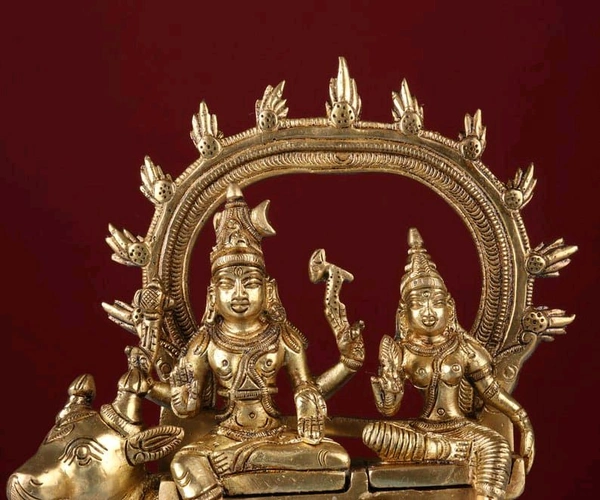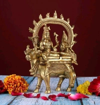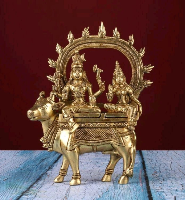 Lord Shiva Parvati Sitting On Nandi, Pure Brass