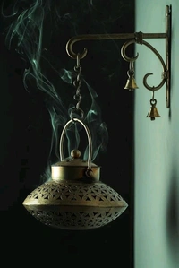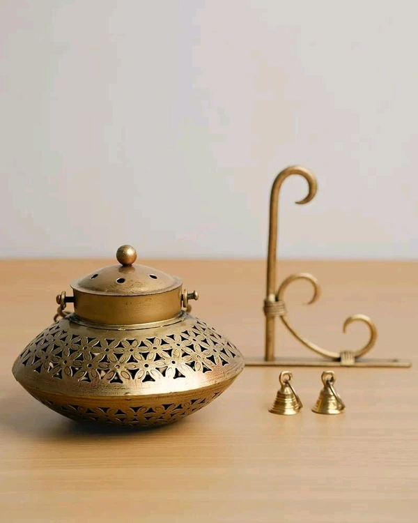 - **Design:** Functions as both an incense burner and a tea light holder, with a stylish metal hanger and decorative bells.