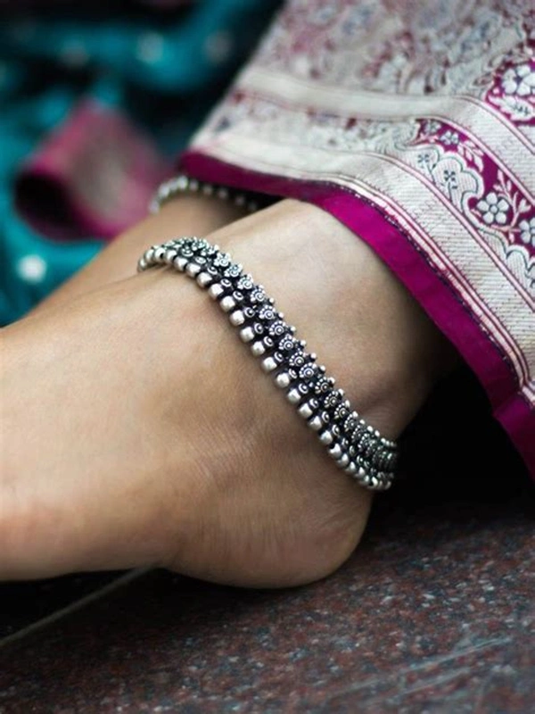This designer charming Oxidized German Silver Anklet is neat and simple for those who wish for light jewelry. Match this jewelry with any of your outfit and flaunt your style.