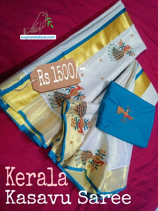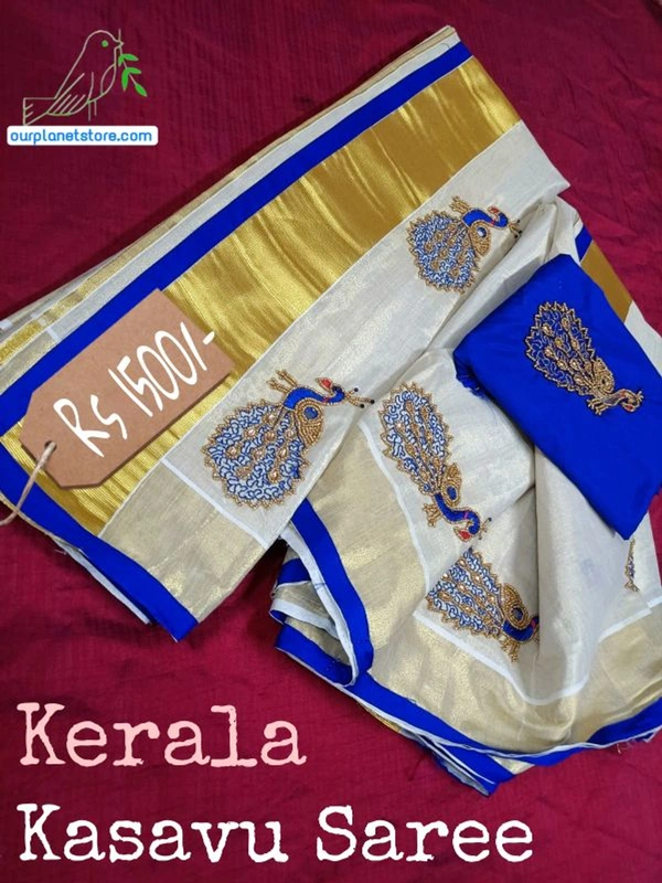 Peacock Design Kerala Kasavu Saree | OURPLANET